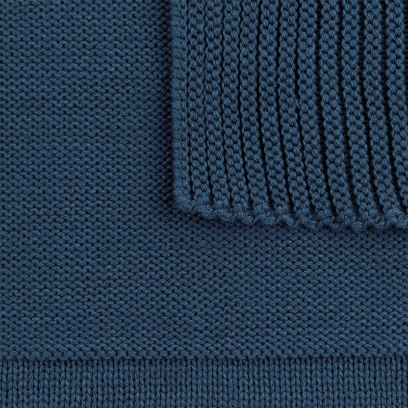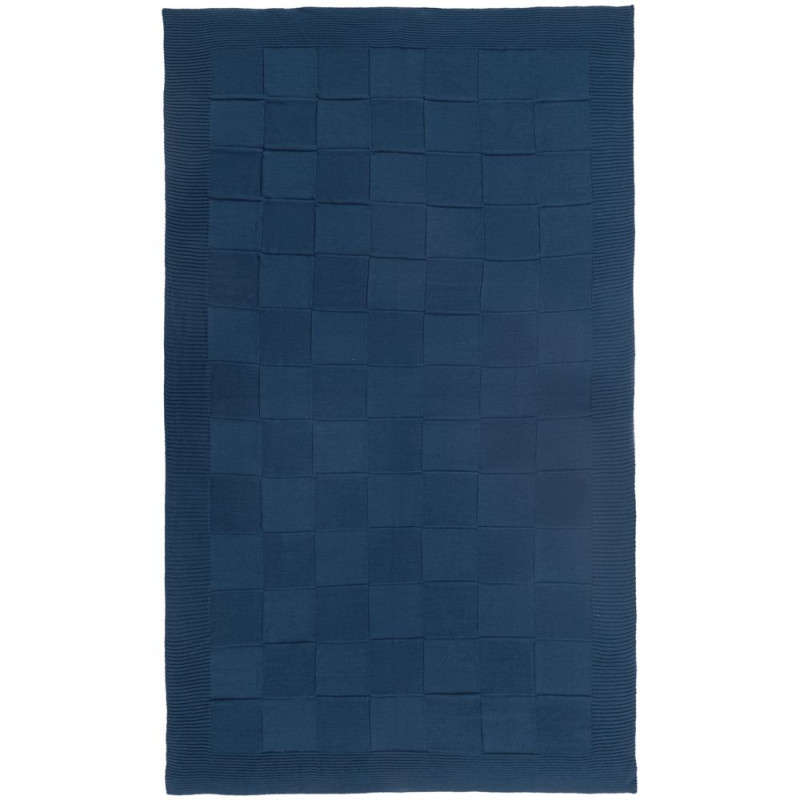 Однотонный плед рельефной вязки «в клеточку» с широким кантом, выполненным резинкой.