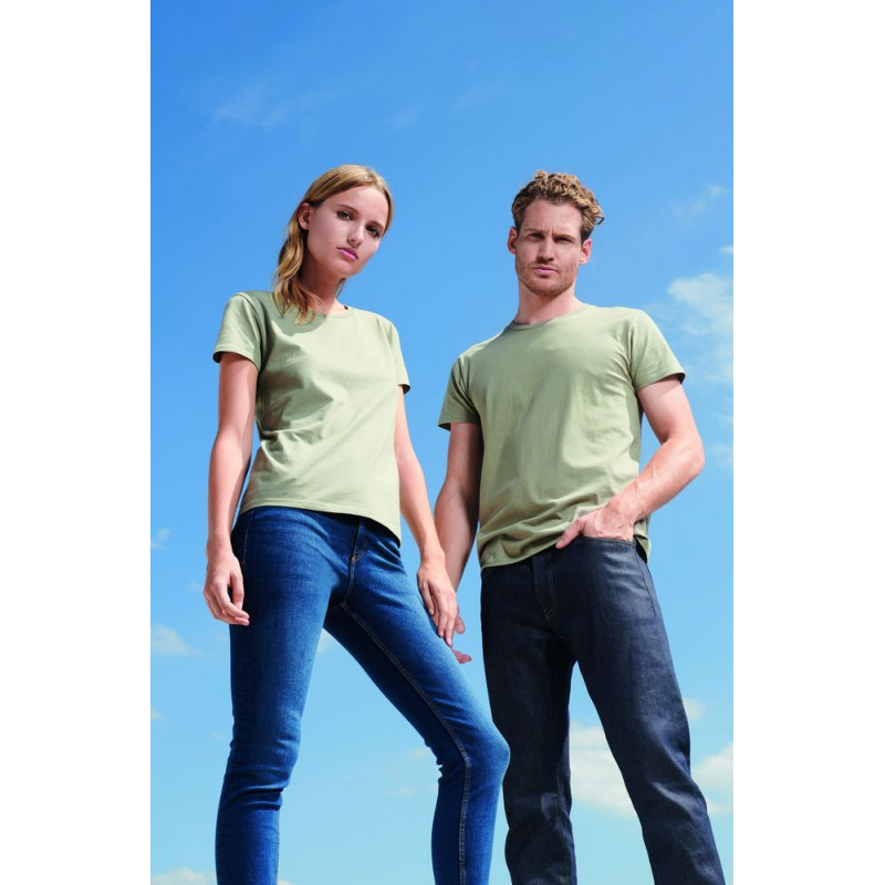 Женская бесшовная облегающая футболка из органического хлопка с круглым вырезом.