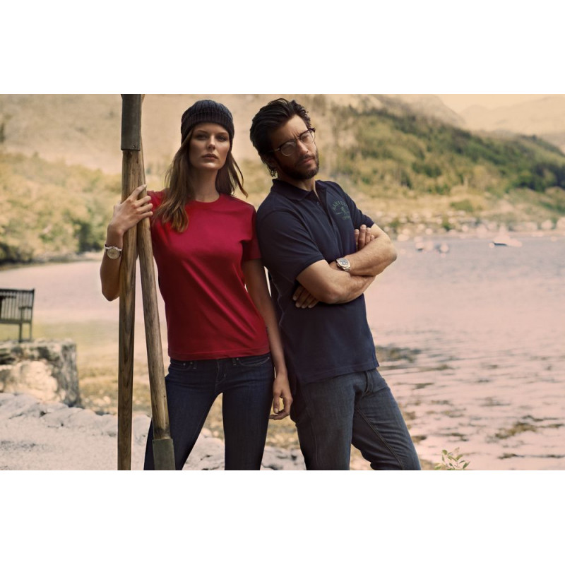 Женственный приталенный силуэт. Резинка ворота четырехслойная, что обеспечивает повышенную прочность и надежность при носке. Плечевой шов смещен вперед, благодаря чему футболка лучше сидит на фигуре и меньше деформируется.