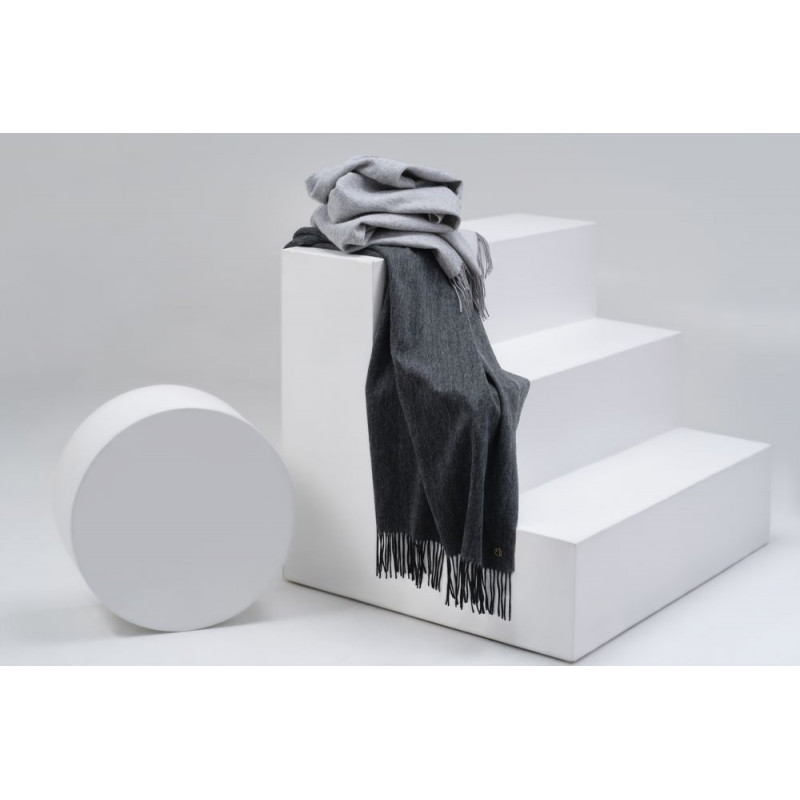 Широкий палантин с едва заметным узором плетения открывает простор фантазии — его можно использовать как шарф, головной убор или декоративный элемент для верхней одежды.
