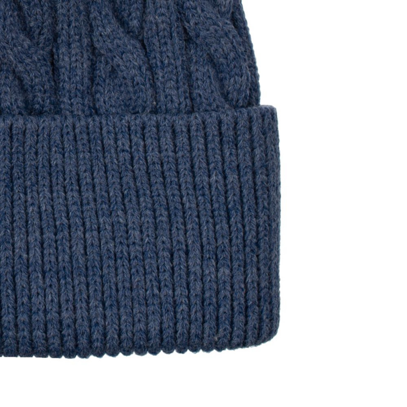 Однослойная шапка фактурной вязки с отворотом.