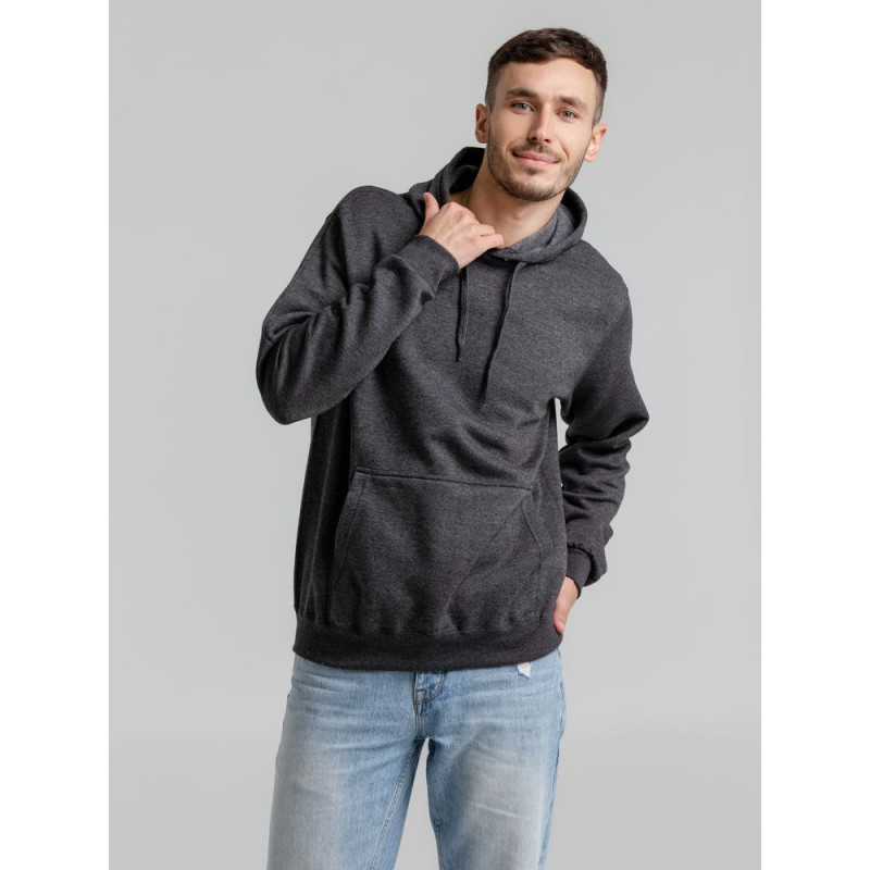Карманы «кенгуру», капюшон без подкладки на шнурках тон в тон. Манжеты и низ изделия выполнены резинкой 1x1. Внутренняя сторона с начесом.