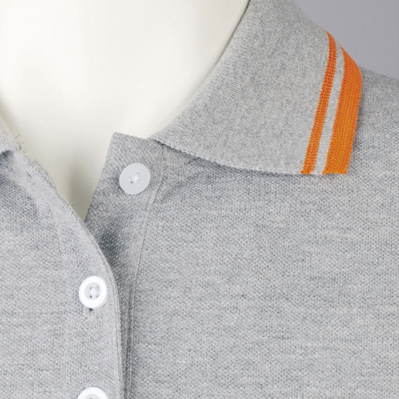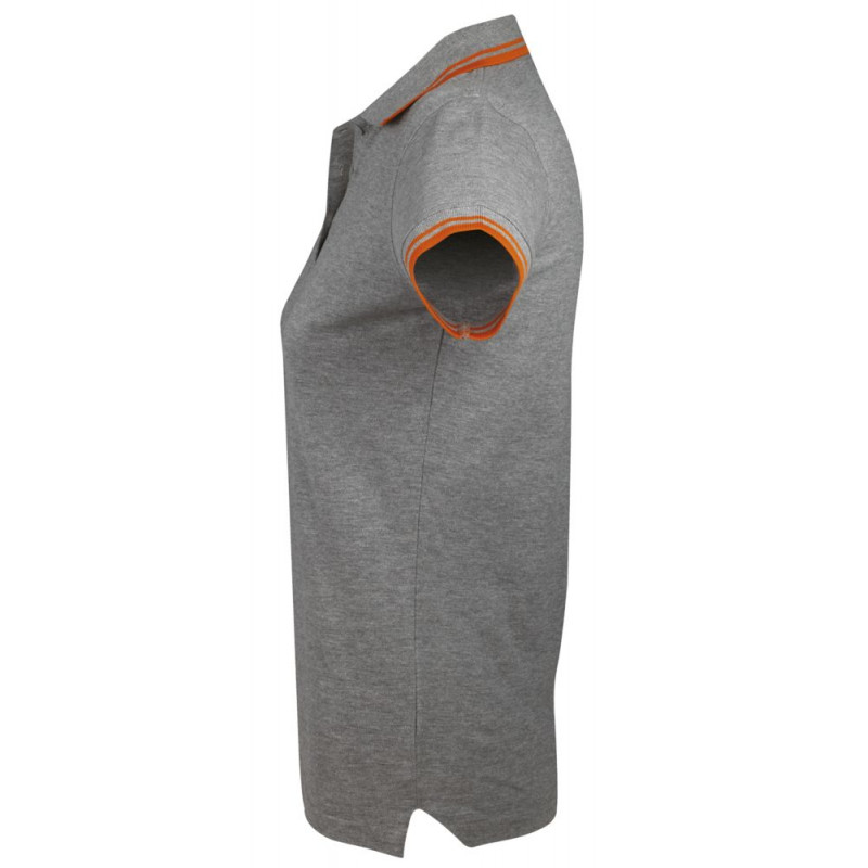 Рубашка поло женская Pasadena Women 200 с контрастной отделкой, серый меланж c оранжевым