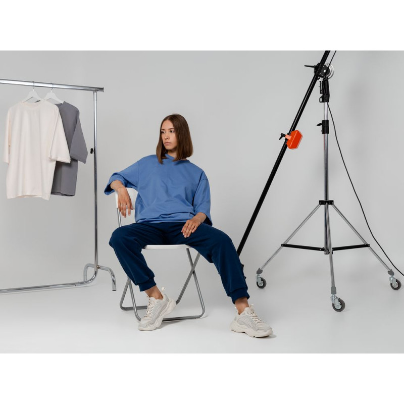 Футболка унисекс свободного кроя со спущенным плечом и смещенными плечевыми швами.