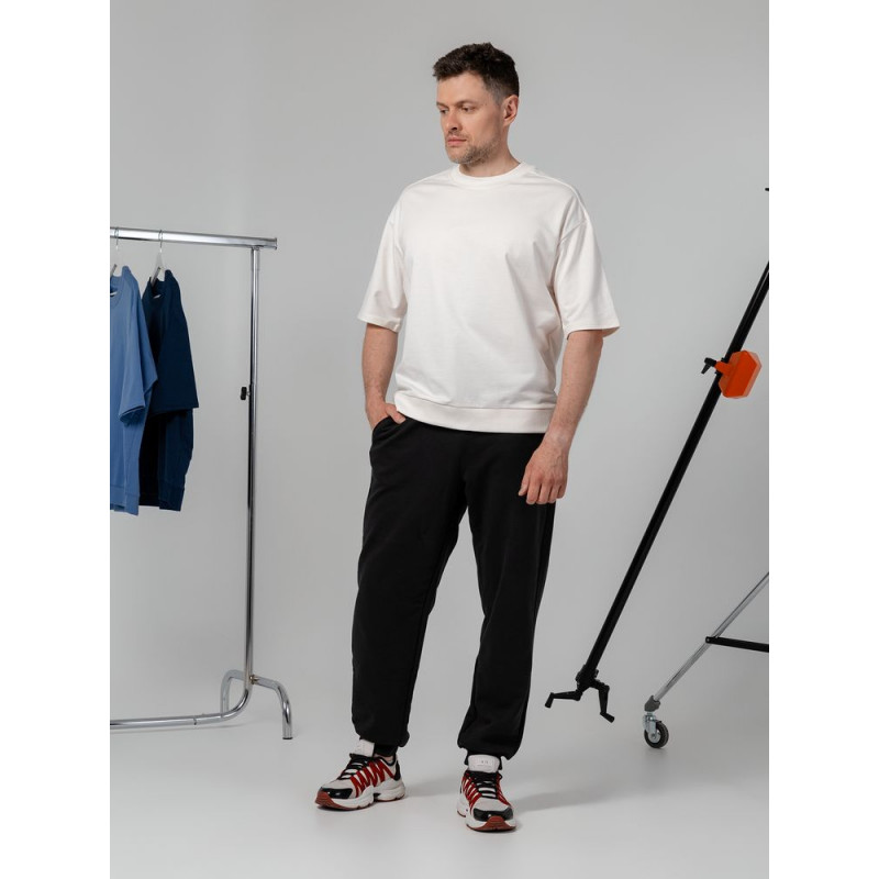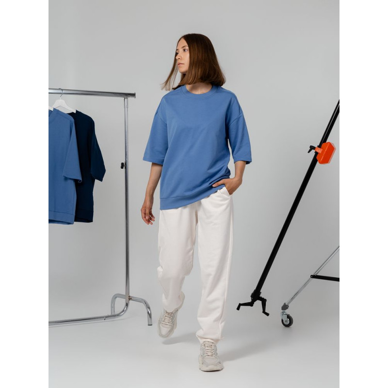 Футболка унисекс свободного кроя со спущенным плечом.