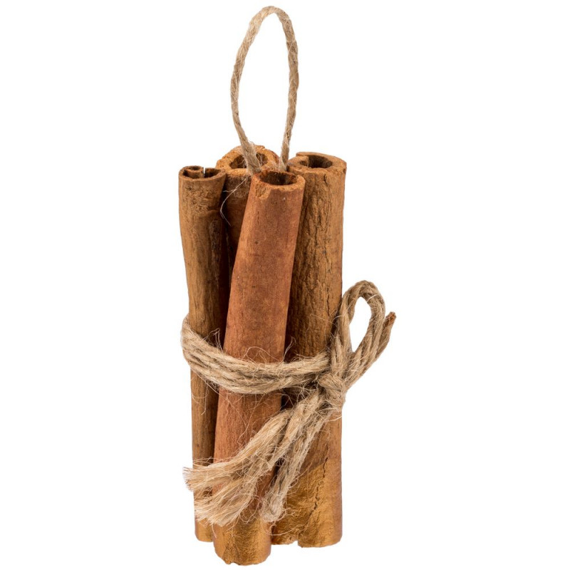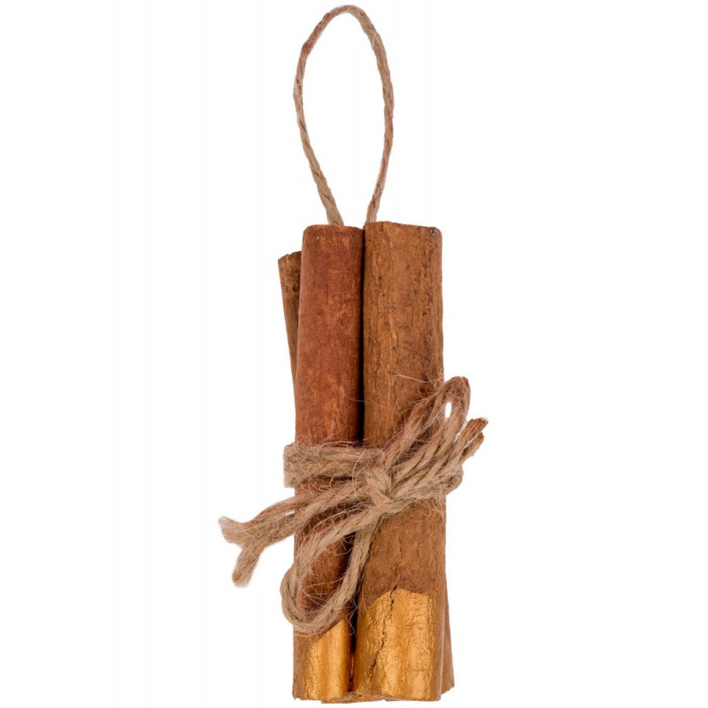 Натуральная корица, окрашенная золотистой краской с подвесом из джута.
