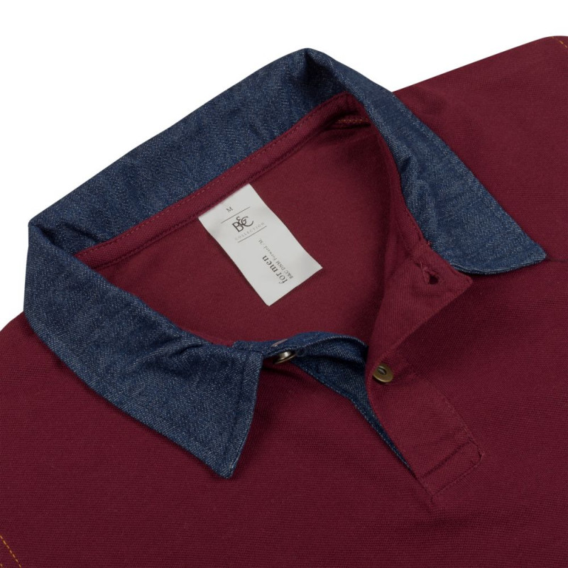 Рубашка поло с джинсовым воротником и контрастной отстрочкой.