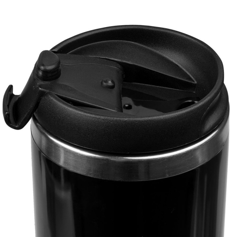 Двухслойная конструкция из пластика снаружи и пищевой нержавеющей стали внутри. Герметичная завинчивающаяся крышка с откидным клапаном для питья.Подходит для большинства автомобильных подстаканников.